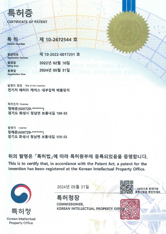 전기차 베터리 케이스 내부압력 배출장치
